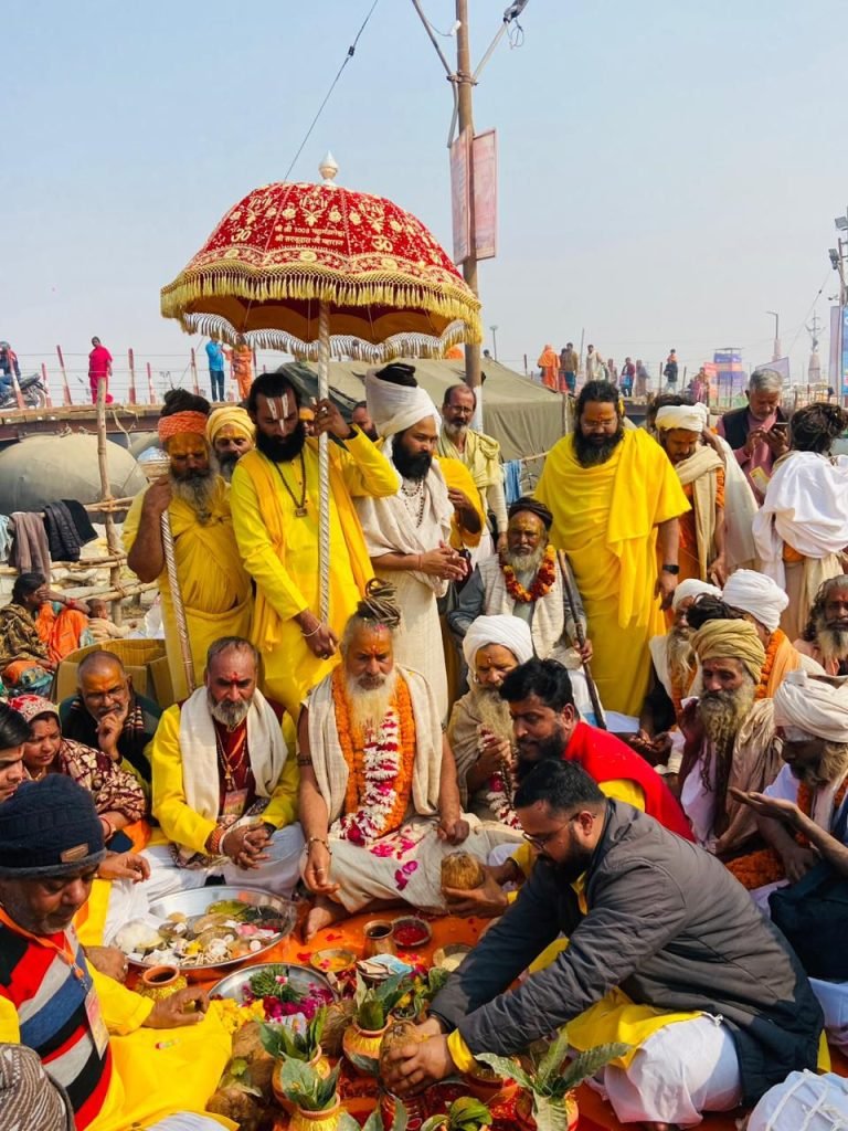 बीकानेर। 144 वर्षों के दुर्लभ संयोग से मिले महाकुम्भ में संगम के तट पर प्रयागराज की धरा पर संत-महात्माओं के सान्निध्य में त्रिवेणी महायज्ञ वाकई महापुण्य का आयोजन साबित हो रहा है। परम पूज्य सियारामजी महाराज की कृपा से तथा गुरुदेव श्रीश्री 1008 महंत श्रीरामदासजी महाराज के आशीर्वाद से और राष्ट्रीय संत श्रीसरजूदासजी महाराज के सान्निध्य में सात दिवसीय इस त्रिवेणी महायज्ञ का आगाज गुरुवार को जलयात्रा के साथ हुआ। सिर पर कलश रख कर ढोल-ताशों के साथ निकली इस जलयात्रा में श्रद्धालुओं का हुजूम उमड़ पड़ा। राष्ट्रीय संत श्रीसरजूदासजी महाराज ने बताया कि बीकानेर से पधारे श्रद्धालुओं ने संत-महात्माओं के सान्निध्य में त्रिवेणी से जल भरा और जलयात्रा निकालने के साथ ही त्रिवेणी महायज्ञ का शुभारम्भ किया गया। त्रिवेणी महायज्ञ में मात्र एक आहुति देने के लिए श्रद्धालु आतुर नजर आए। प्रयागराज महात्यागीनगर आश्रम में 29 जनवरी तक चलने वाले इस महायज्ञ में महंत माधवदासजी महाराज, महंत बिजली बाबा, महंत रामेश्वरदासजी, महंत शिवरामदासजी, महंत बड़के बाबा, महंत भगवानदासजी, संत बालकदासजी महाराज आदि शामिल रहे।