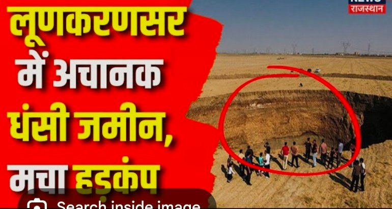 DNR NEWS. बीकानेर के लूणकरनसर में मंगलवार सुबह एक खेत में अचानक जमीन धंस गई। करीब तीस से चालीस फीट तक धंसी जमीन को देखने प्रशासनिक
