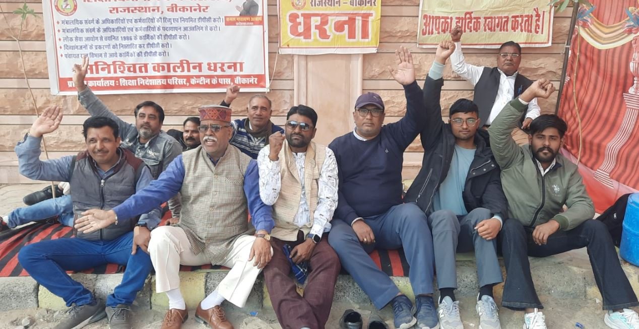 राजस्थान में शिक्षा विभागीय कर्मचारी संघ बीकानेर के बैनर तले डीपीसी (विभागीय पदोन्नति समिति) और अन्य लंबित मांगों को लेकर अनिश्चितकालीन धरना जारी है। प्रदेशाध्यक्ष