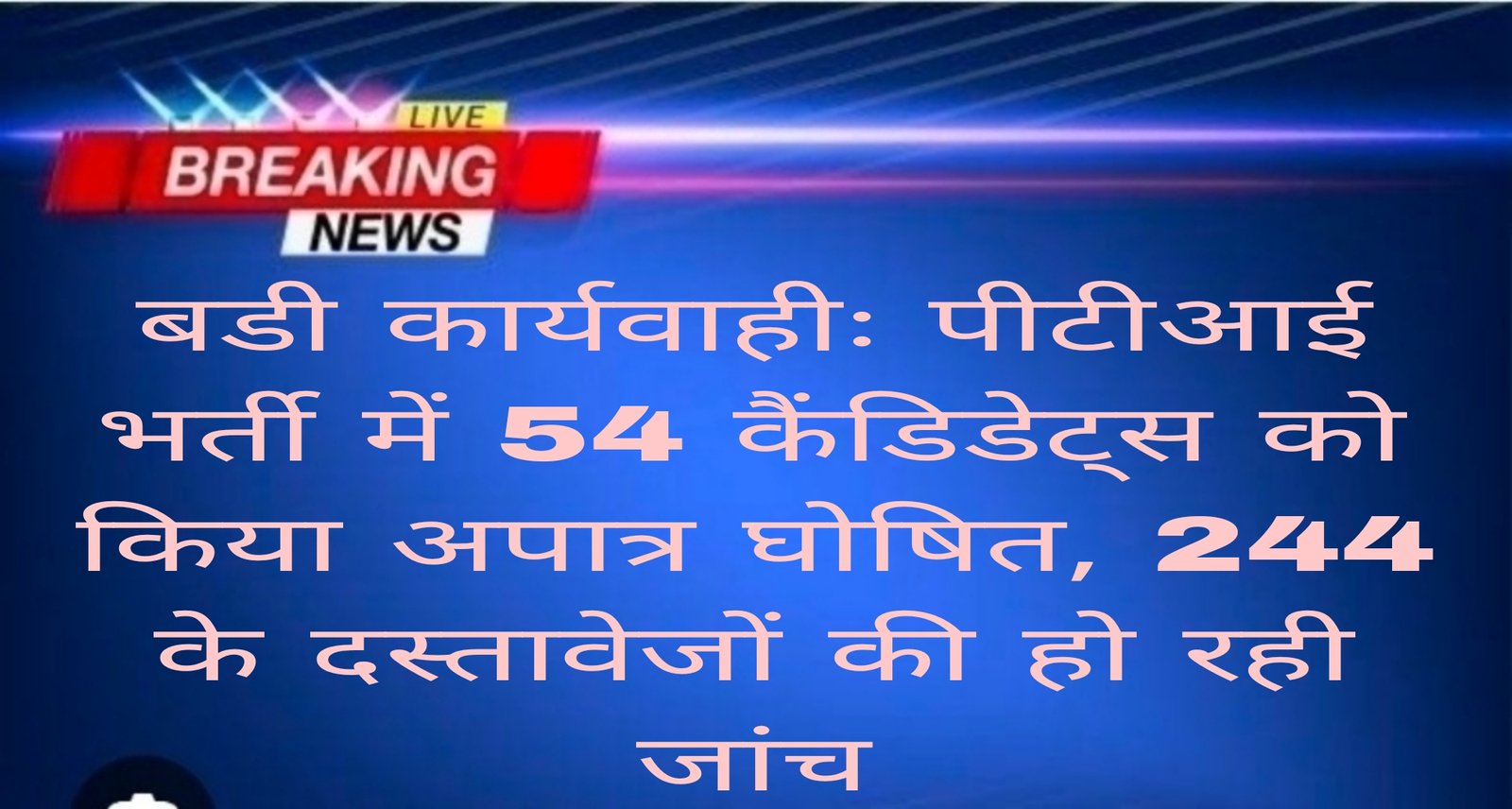 बडी कार्यवाहीः पीटीआई भर्ती में 54 कैंडिडेट्स को किया अपात्र घोषित, 244 के दस्तावेजों की हो रही जांच जयपुर। राजस्थान कर्मचारी चयन बोर्ड ने दस्तावेजों