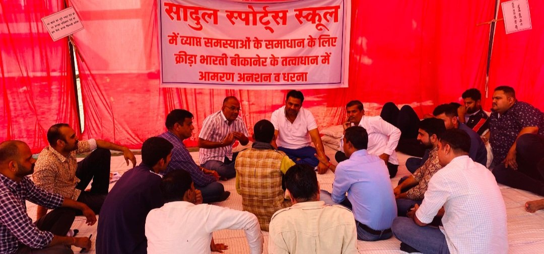 बीकानेर,प्रदेश के एकमात्र आवासीय खेल विद्यालय, सादुल स्पोर्ट्स स्कूल के बाहर क्रीड़ा भारती के नेतृत्व में जारी भूख हड़ताल आज 18वें दिन में प्रवेश कर